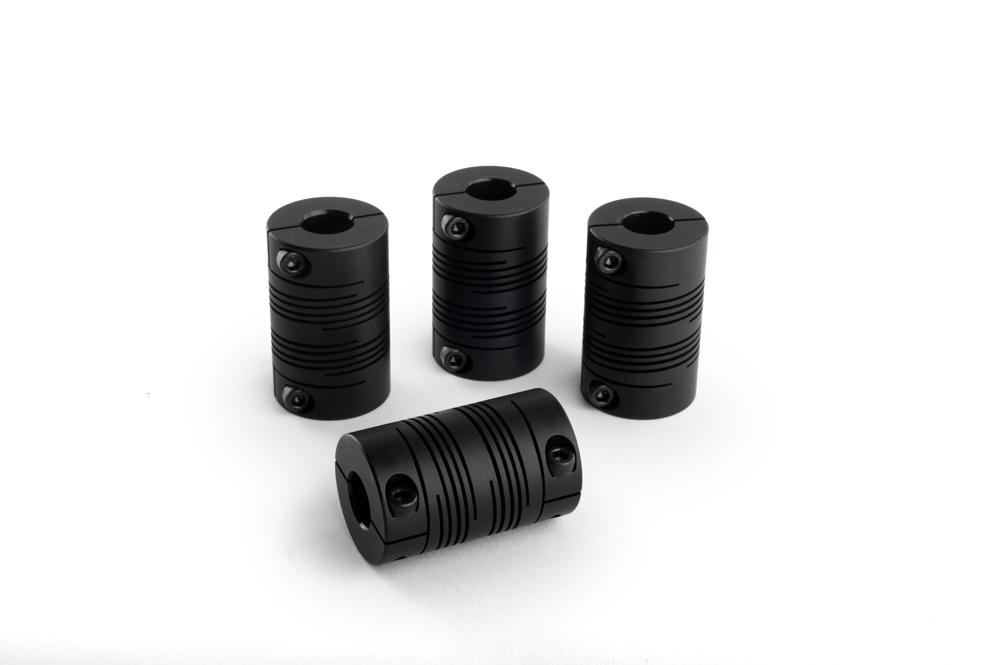 D-series beam couplings feature an expanded bore size range up to 1 in (25 mm), angular misalignment capability up to 7 degrees, and an anodized finish for improved corrosion resistance. The six beam design provides higher torsional stiffness compared to single or four beam couplings while maintaining high misalignment compensation.