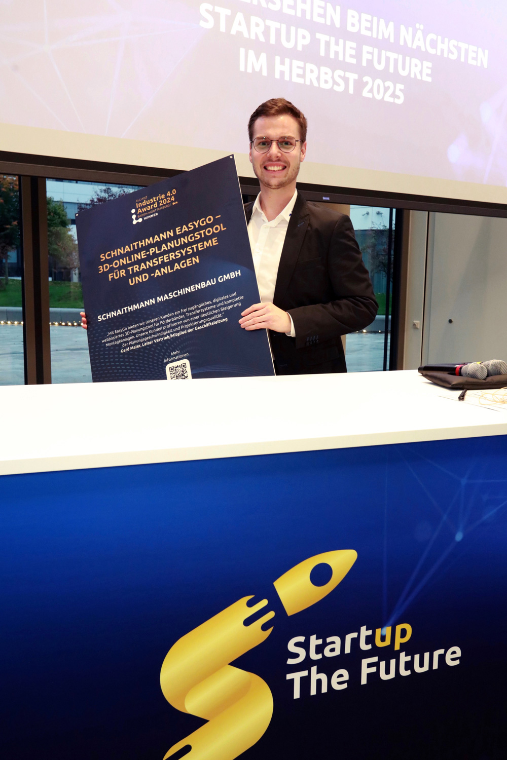 Maximilian Perret, Leiter Produkt- und Prozessmanagement, nahm die Auszeichnung von der baden-württembergischen Wirtschaftsministerin Dr. Nicole Hoffmeister-Kraut entgegen. „Wir freuen uns sehr, dass unsere Bemühungen, die Digitalisierung voranzutreiben, mit dem ‚Allianz Industrie 4.0 Award‘ des Landes Baden-Württemberg gewürdigt werden“, sagt Maximilian Perret. „Die Veranstaltung ‚Startup the Future‘ ist zudem eine hervorragende Gelegenheit, sich mit Expertinnen und Experten über aktuelle Trendthemen wie Künstliche Intelligenz, Cyber Security und XaaS-Services für den Maschinenbau auszutauschen und neue Kontakte zu knüpfen.“