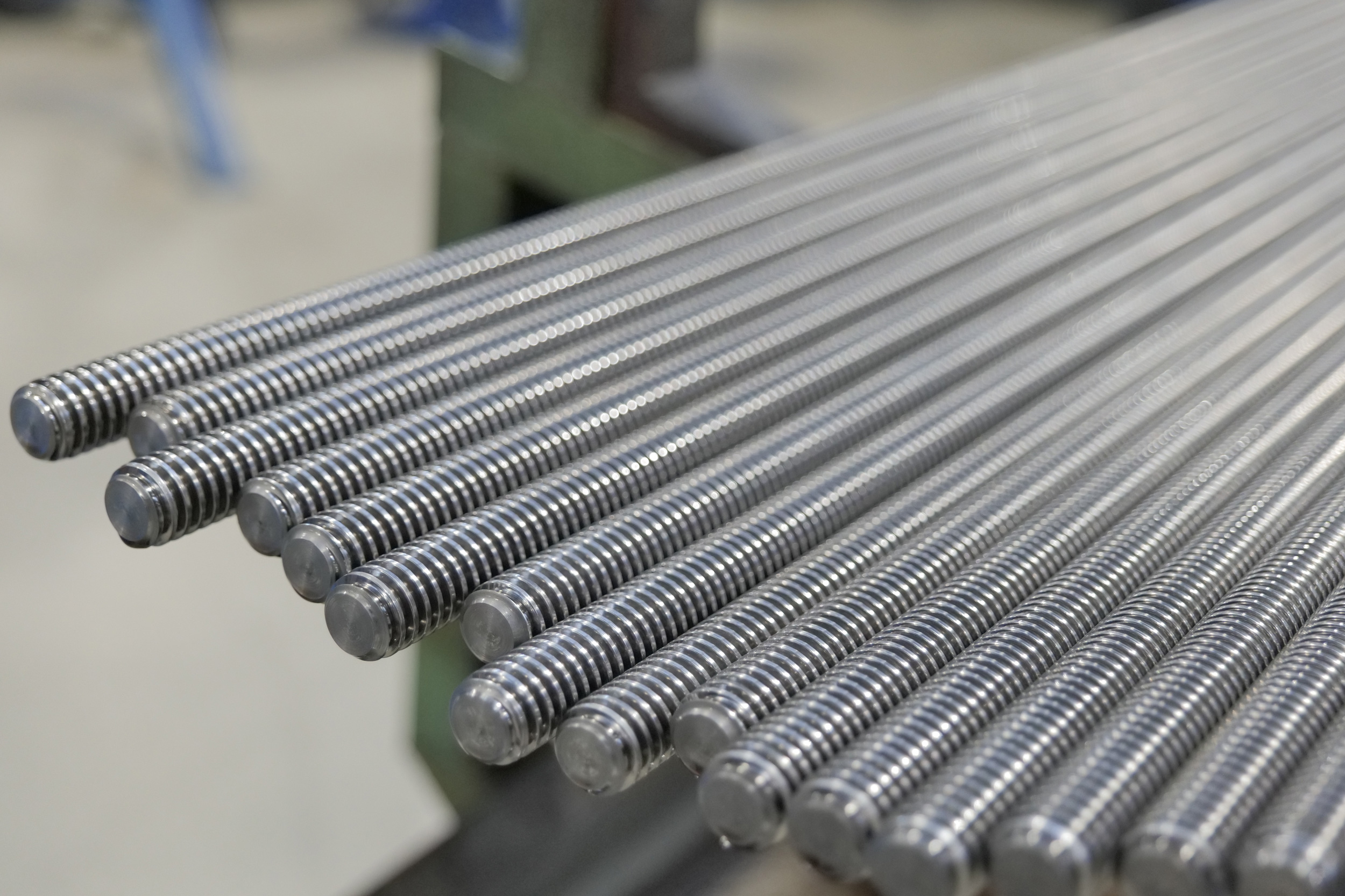 Rolled trapezoidal threaded spindles are manufactured in a chipless cold forming process, thread rolling. This production process has a positive impact on the physical and technical properties of the trapezoidal threads. It gives them a higher wear resistance, tensile and flexural strength, and it gives the smooth thread flanks a better surface quality. The threads have a high profile accuracy – the precise base material tolerances cause a higher degree of precision of the flank diameter. Another advantage is the high level of wear resistance: the rolling process condenses the material in the thread area, which gives it a higher density and hardness. This in turn makes the thread highly resistant to wear, and gives it a long service life.