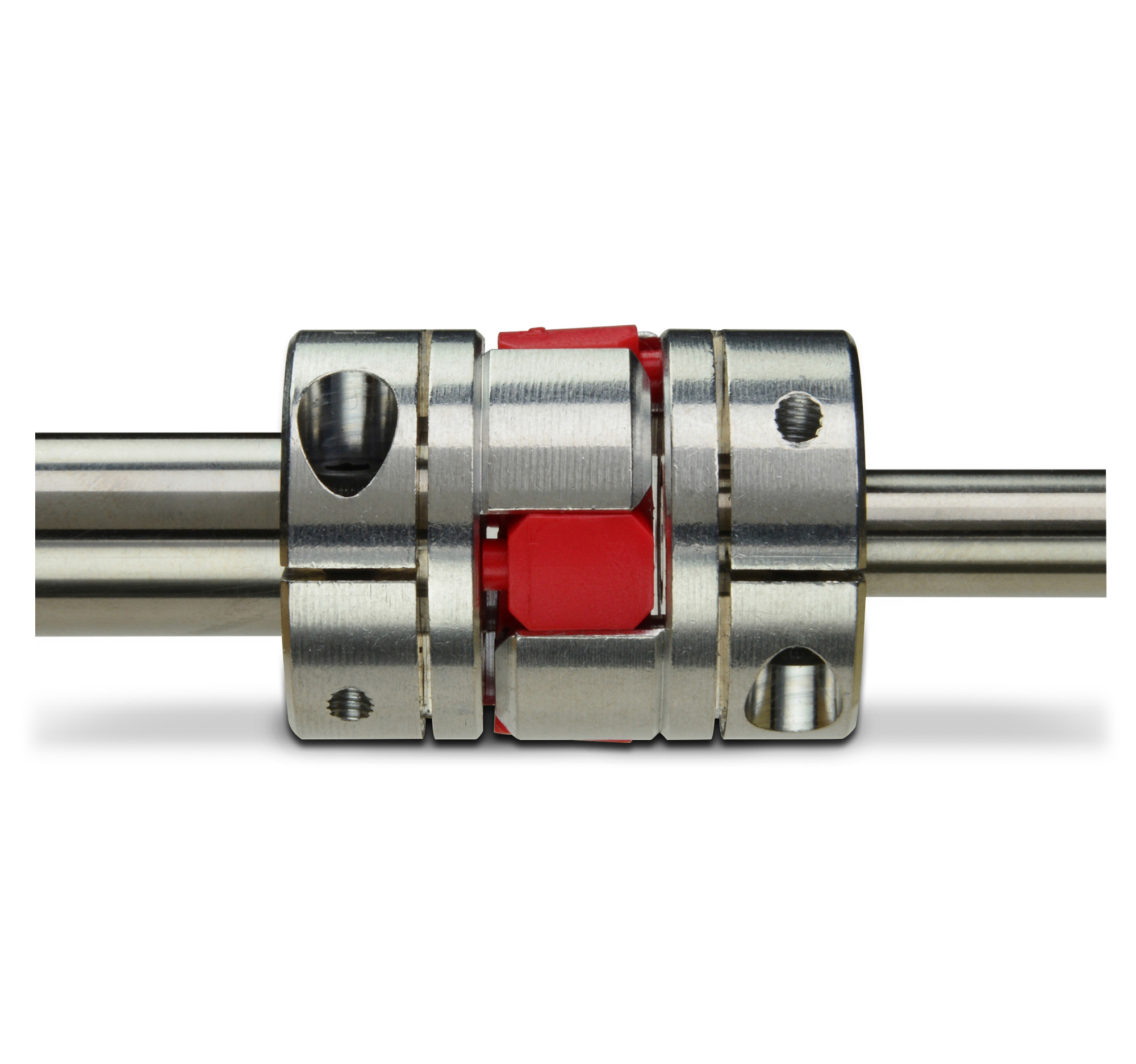 Ruland’s balanced jaw coupling design consists of two hubs and an elastomeric insert known as "the spider." The hubs are machined through a proprietary process that creates a curved jaw profile, enabling a press fit with the spider for zero-backlash operation. Start and stop applications in servo motor drive systems will often experience high peak torque loads caused by inertia, friction, and high acceleration/deceleration rates. The spider dampens these impulse loads to minimize shock to the motor and other sensitive components. Spiders are available in three durometers – 85 Shore A for greatest dampening, 92 Shore A for a balance of dampening, torque and torsional stiffness, and 98 Shore A for a small amount of dampening and the highest torsional torque and stiffness.